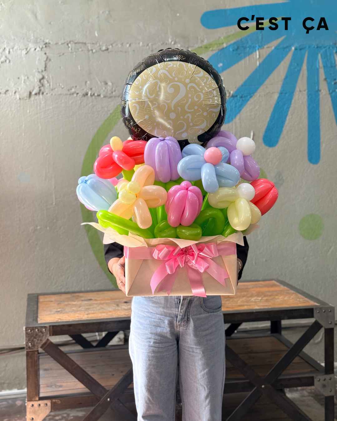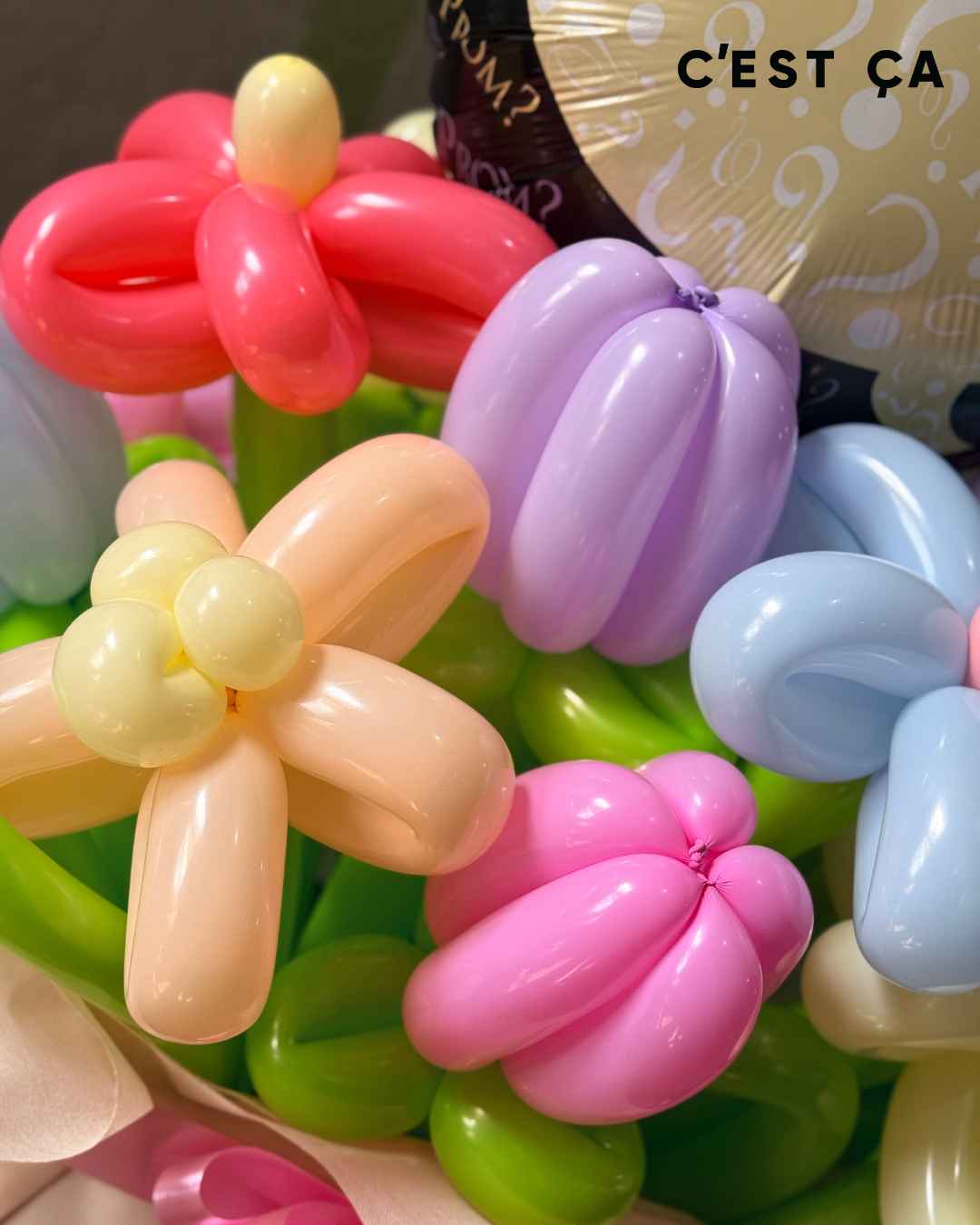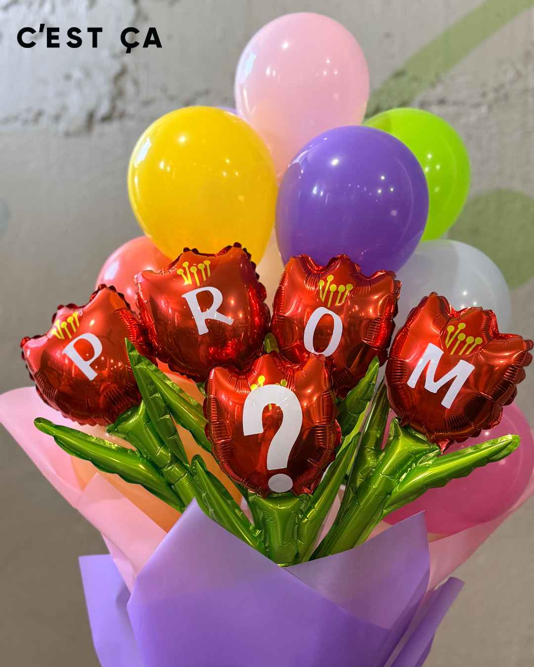 A bouquet that never wilts ! Crafted entirely from balloons, styled to look like a sweet hand-held floral arrangement, made to make your prom ask pop!