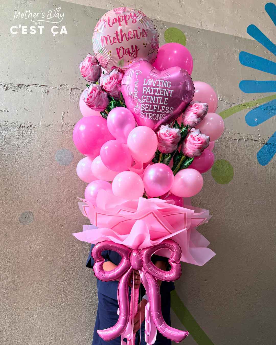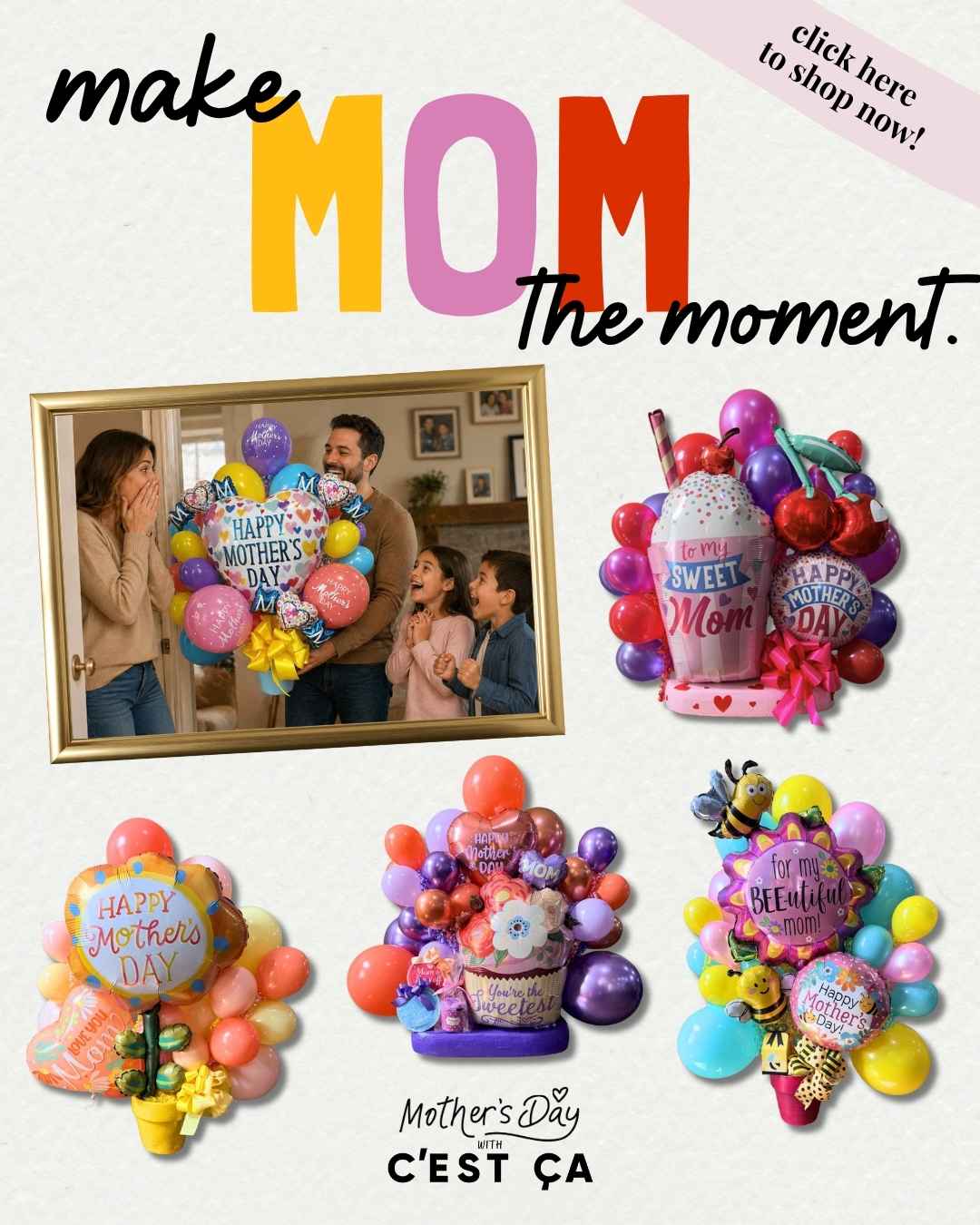 Go all out for Mom with a grand, joy-filled bouquet. Bursting with oversized blooms and celebratory balloons, it’s a big, beautiful way to say I love you.