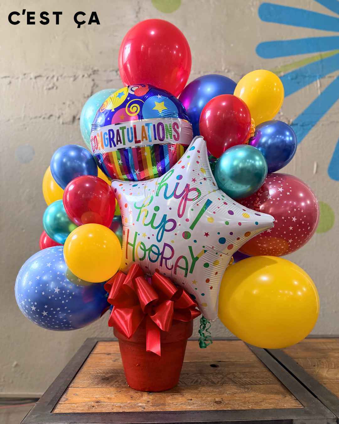 Say congratulations and Hooray and Yay with this bright and colorful arrangement!