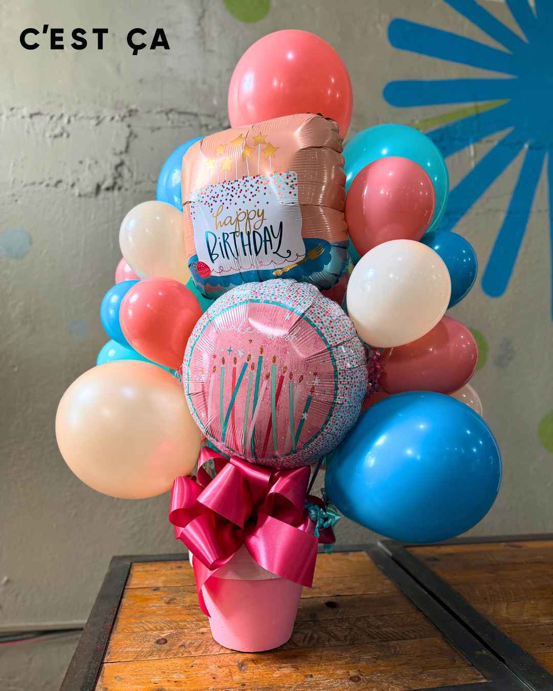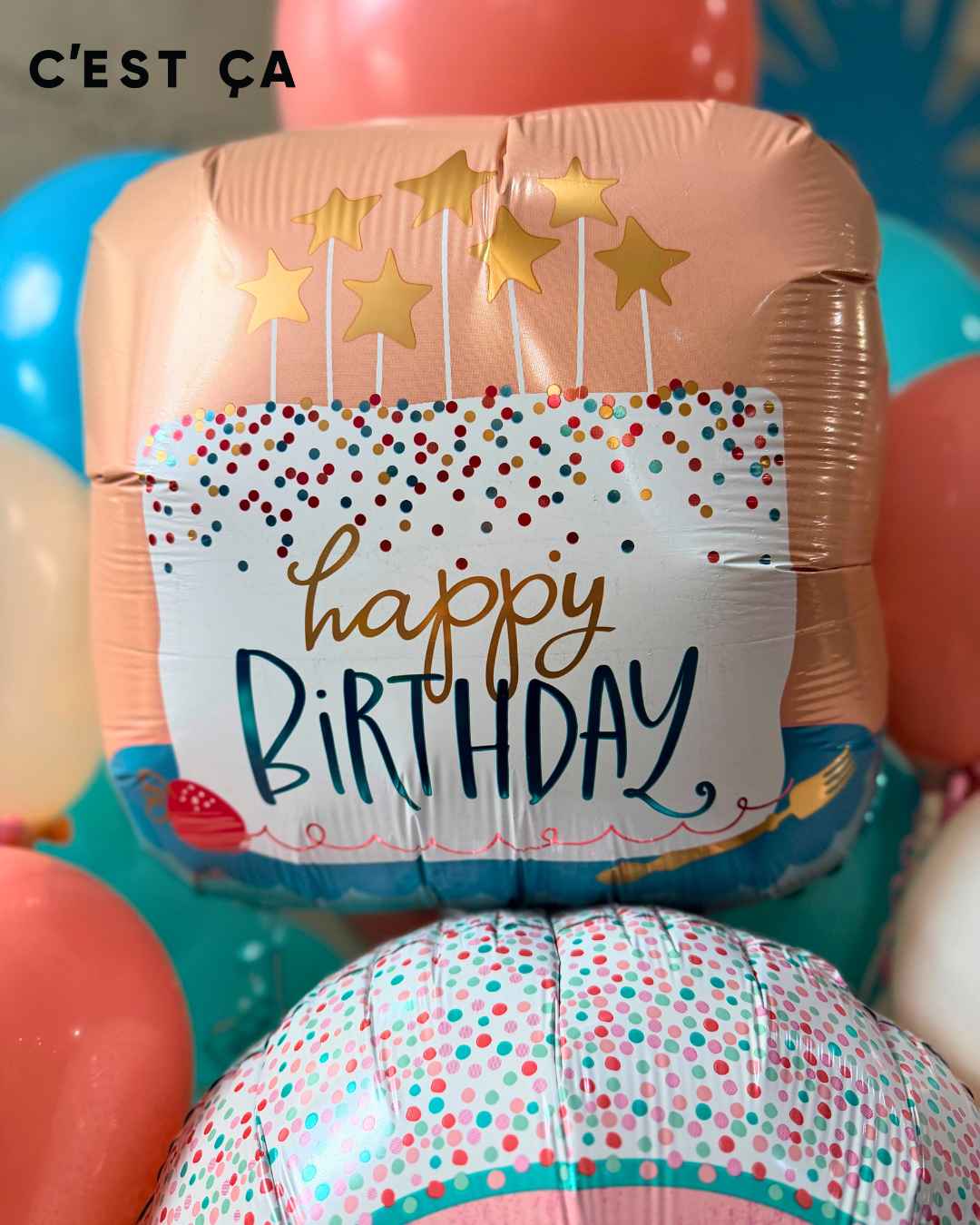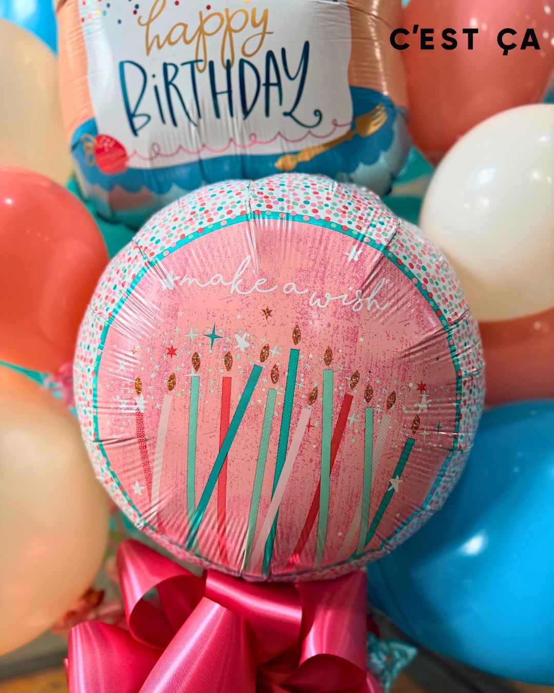 Bright, bold, and effortlessly cute. This balloon birthday set features a statement balloon cake, vibrant candles and colorful accents made for photos, wishes, and unforgettable celebrations!