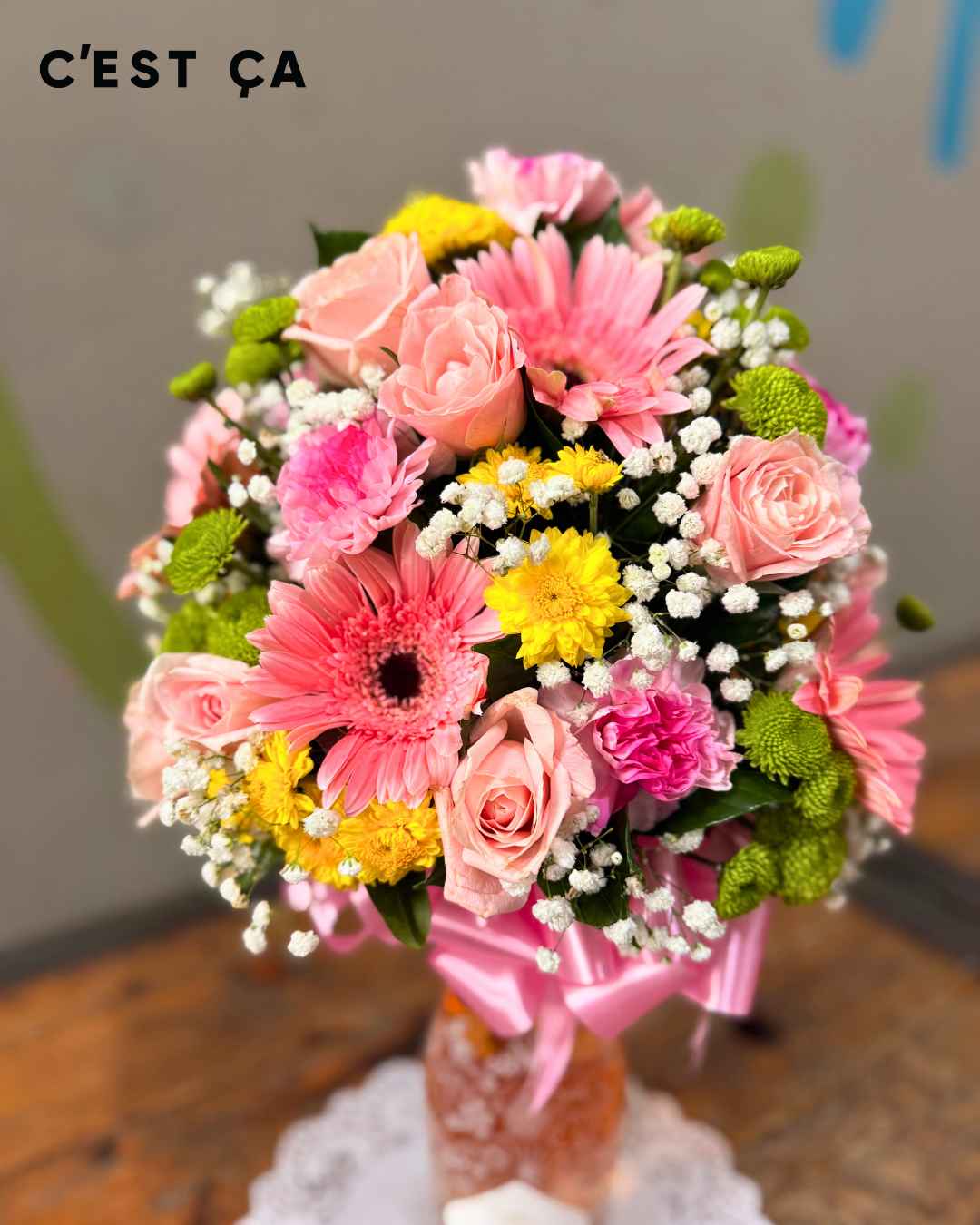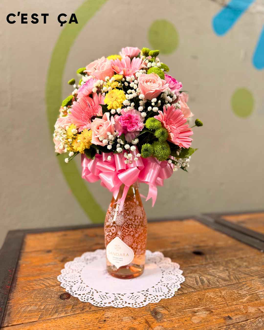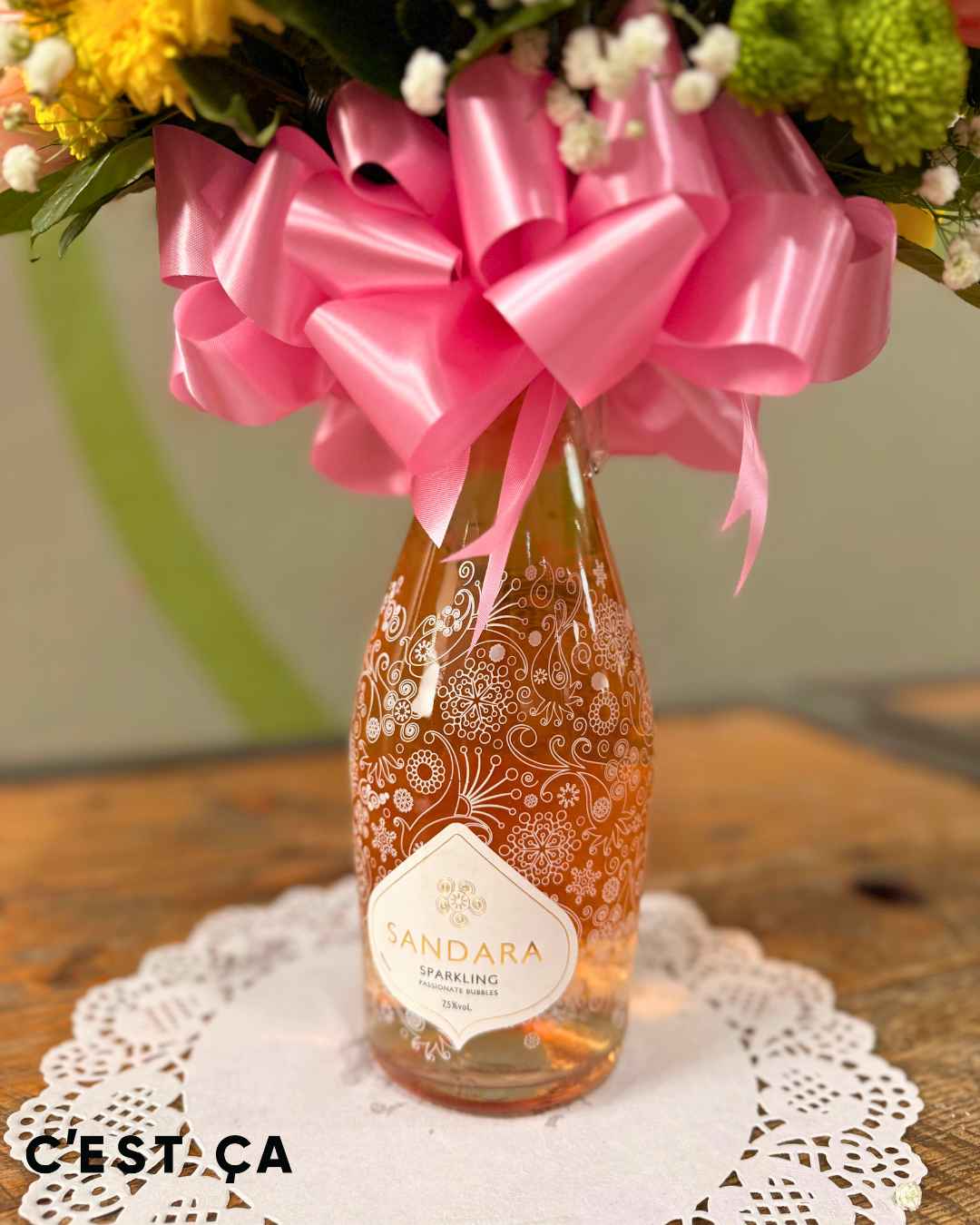Fresh flowers on top of a sparkling wine bottle 🍷
