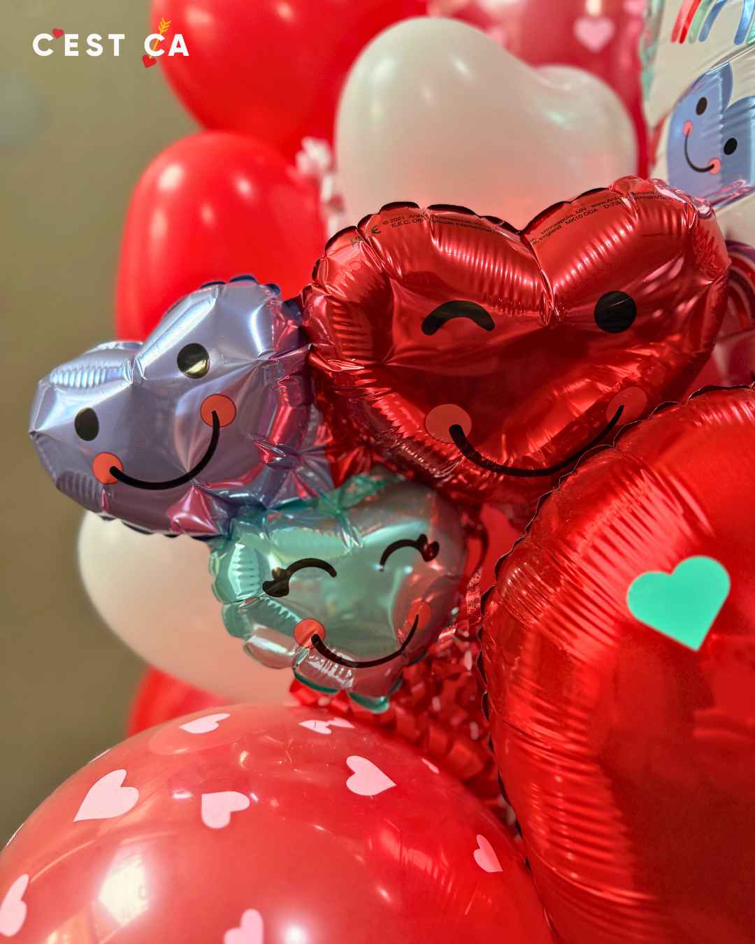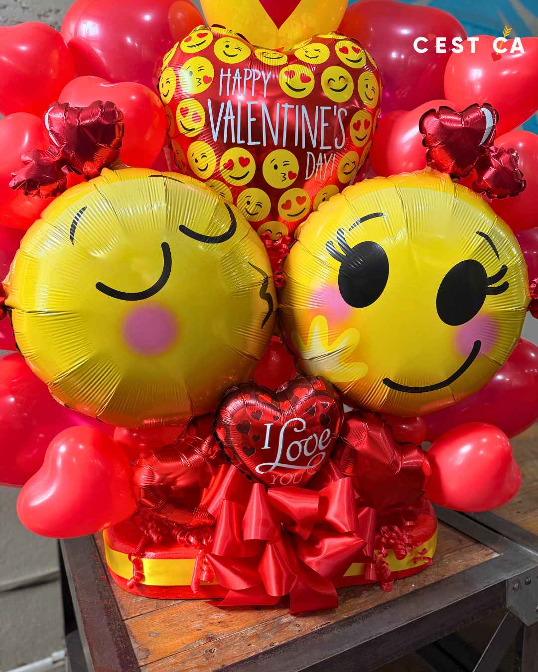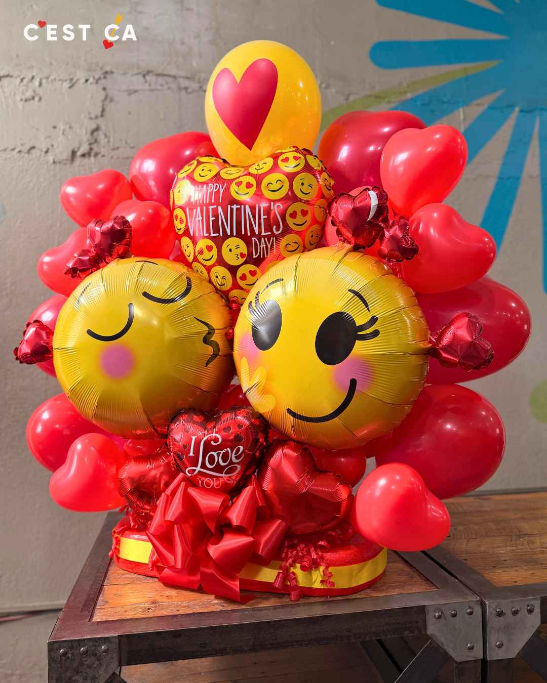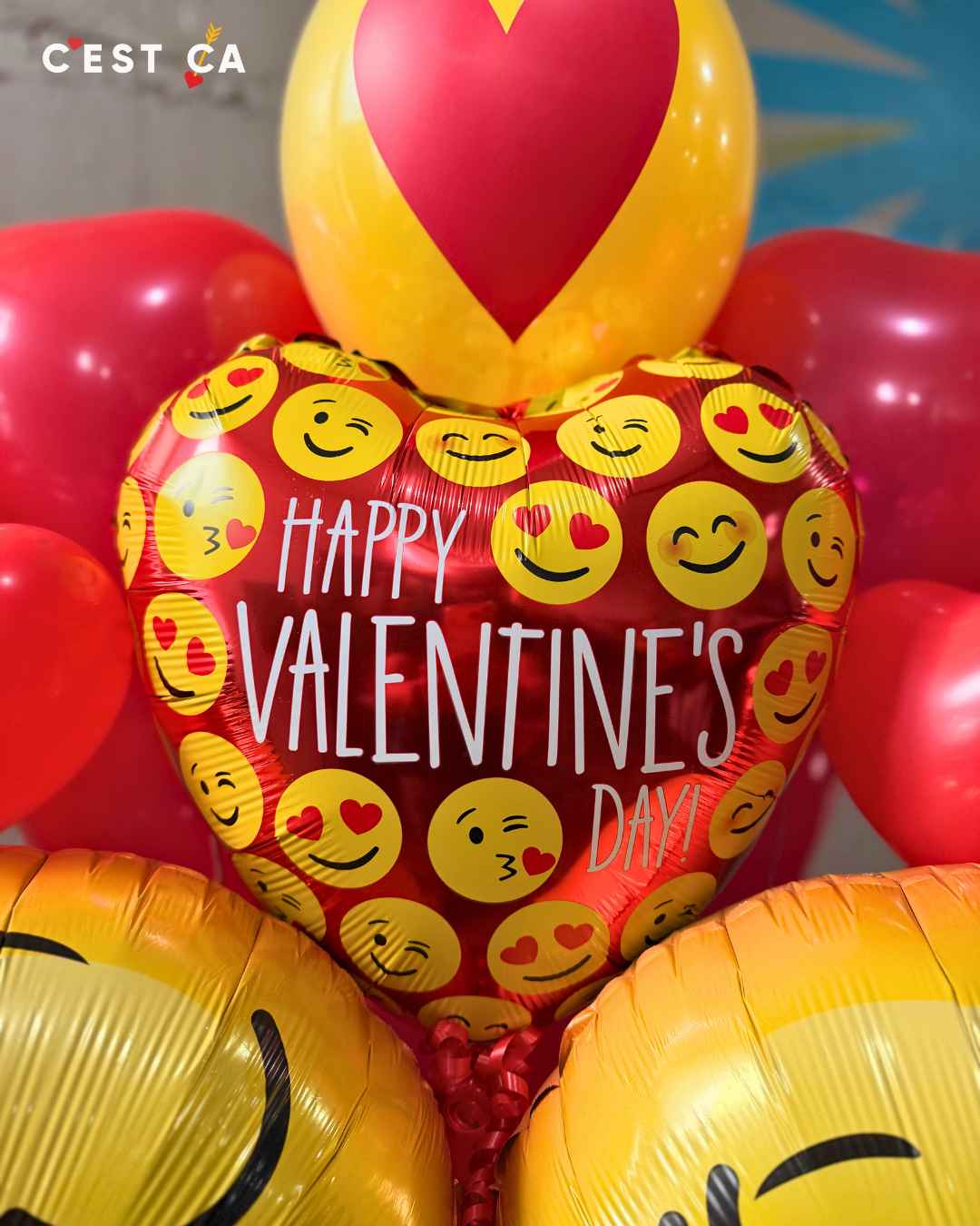 Sometimes a kiss says it all. Oversized emoji balloons, Valentine’s cheer, and a whole lot of hearts.