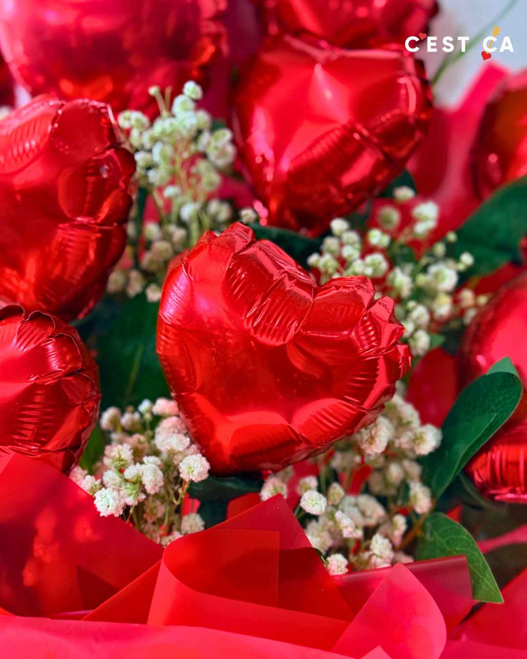 A delightful mix of fresh red roses and Valentine’s heart balloons, designed to make your I love you unforgettable.