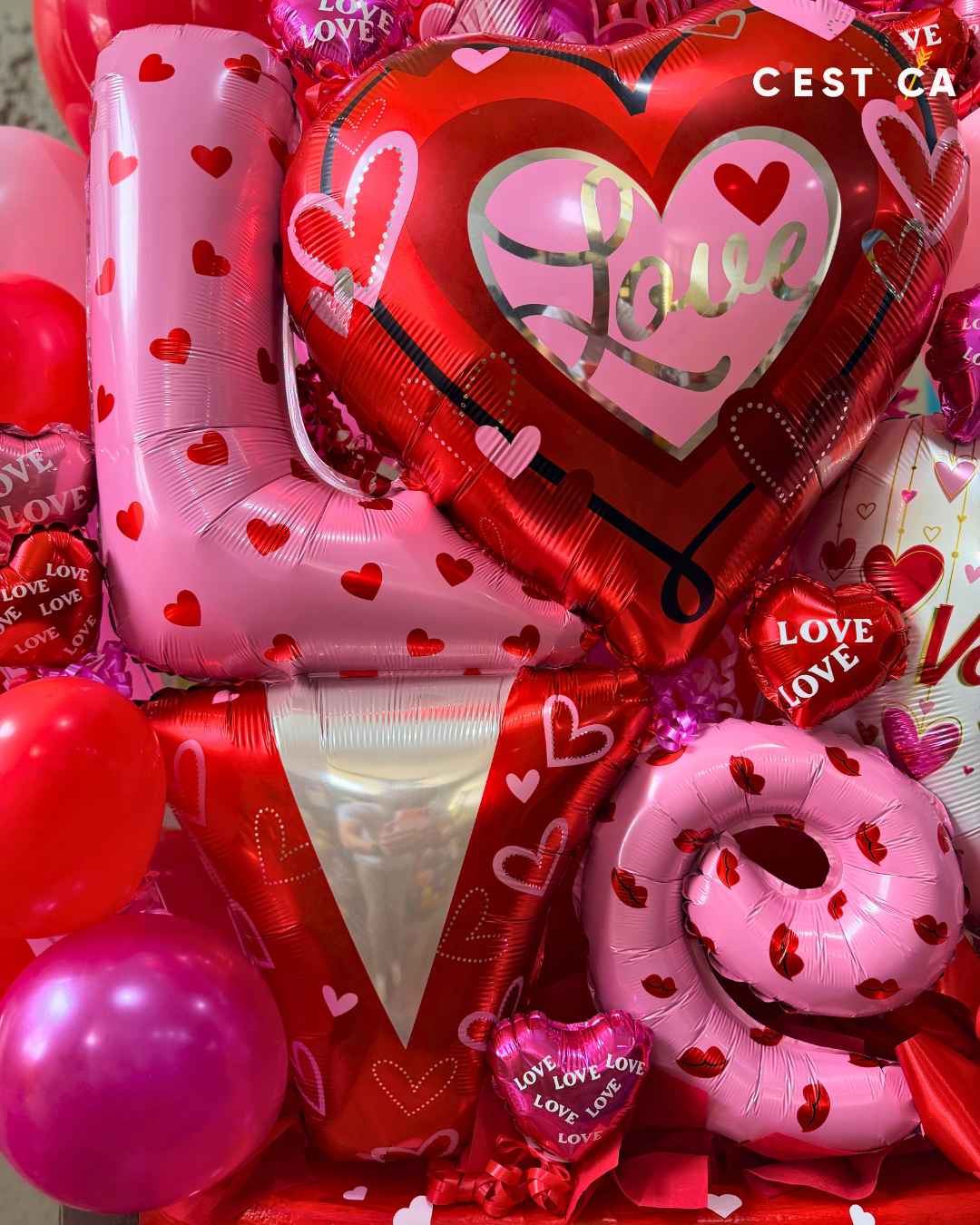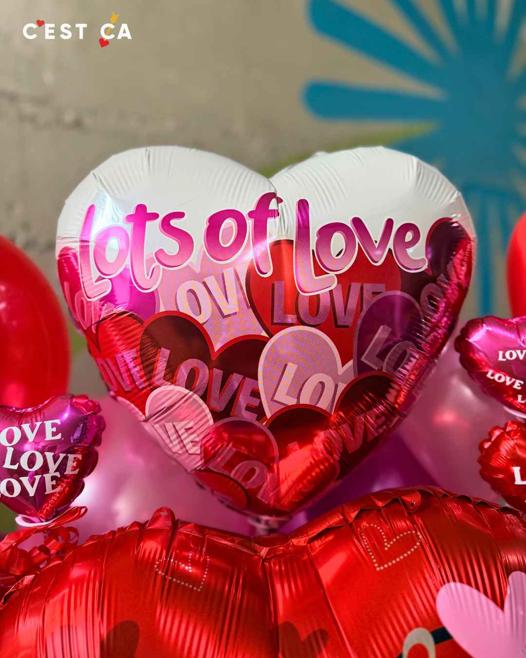 Lots of Love, literally! With a giant L-O-V-E balloon, floating hearts everywhere, this is Valentine vibes turned all the way up!