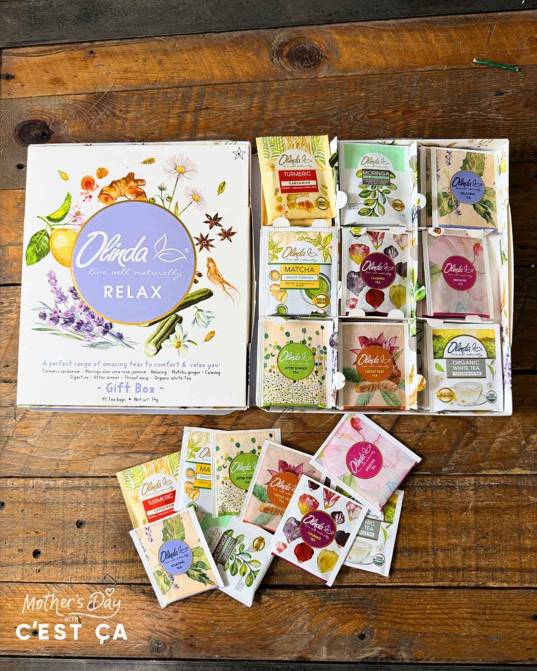 A gentle reminder for Mom to slow down and unwind. Paired with soothing "Olinda RELAX" Tea Sampler (45 count) and calming balloon accents, this set is all about giving her a well-deserved moment of peace 💆🏻♀️